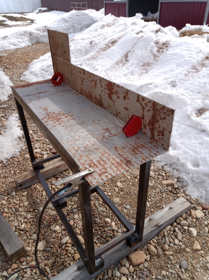 Пока снег ещё не весь растаял и бетон лить рановато для будущей веранды, решил что надо сварить мангал, части которого были нарезаны в аккурат перед первым снегопадом в ноябре прошлого года. Пришлось всё свернуть и оставить до потепления.