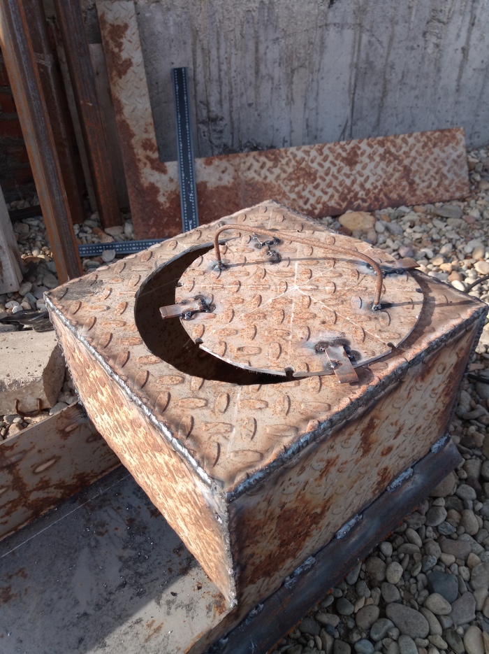 Поработал ещё немного над своим Царь-мангалом. Весит он теперь точно не менее 70кг без подставки. Продухи пока делать не стал. Попробую пока так.