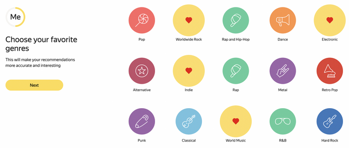 Так работают настройки персонализации сервисов. Например, музыкальные платформы сначала просят пользователя рассказать о предпочтениях, а потом формируют плейлисты на основе того, что он указал, что лайкнул и что добавил в свои коллекции.