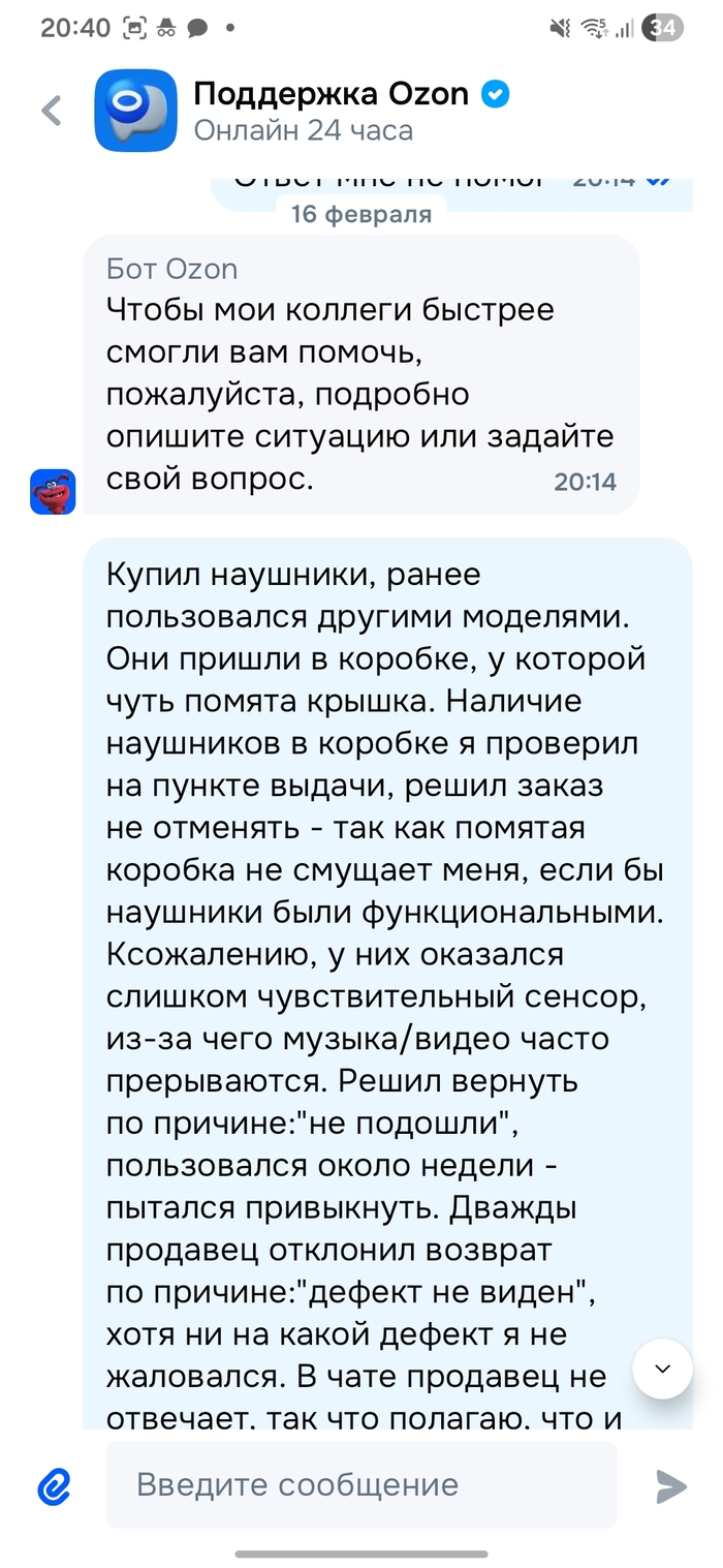 Начинаю на озоне спор с продавцом, и его мне тоже отклоняют, уже по причине, нарушения товарного вида