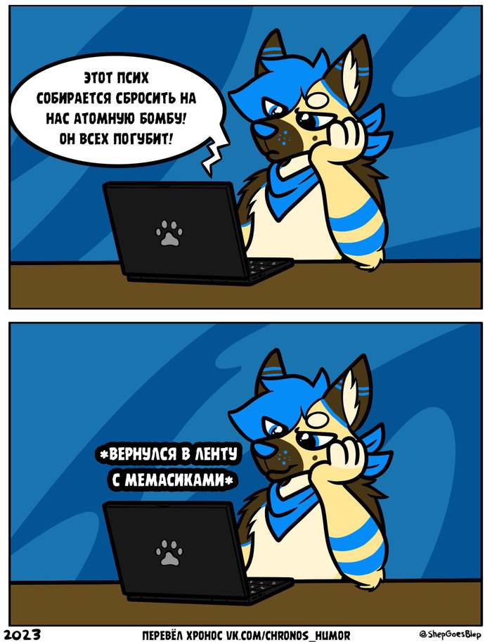 16 XCHRONOSX MINE Душевное равновесие 2 года назад vk.com/chronos_humor Показать полностью 1 [моё] Фурри Комиксы Перевел сам Furry Dog Юмор Shepgoesblep Перевод Веб-комикс 1 Ещё 0