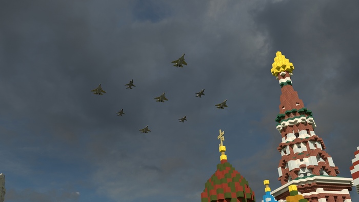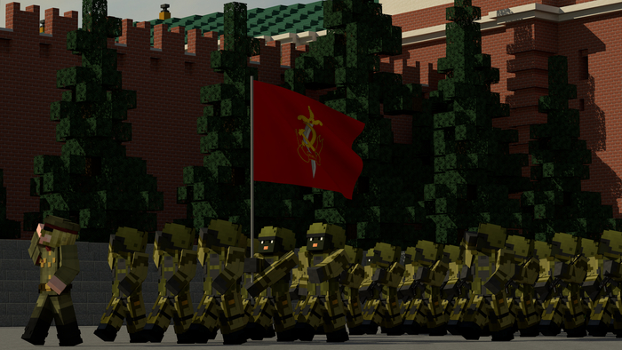 Представляю вам кадры парада 7 ноября 2023 года, проведённого в игре Minecraft. Сделано совместно с @TrainsFan