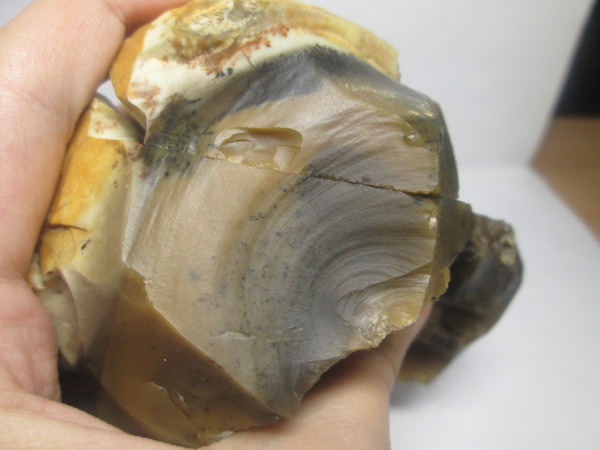 Это образец мохового агата. Достаточно крупный (чуть больше кулака) и немного хрупкий (на самой последней фотографии представлено то, что от него отцепилось при фотографии/сразу при передаче). Также присутствуют включения кварца и кальцита. Фотографировать его было крайне сложно (постоянно выпадал из рук, фокусировка шла не туда, куда надо, не получилось хорошо передать то, как он по-настоящему выглядит и пр.), поэтому фотографий сравнительно немного (вот серьёзно вам говорю, обычно я фотографирую гораздо больше. Я не специально, оно само так получается).