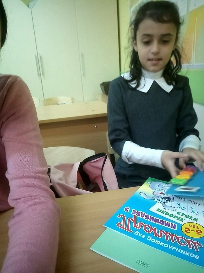 Правда, не всегда так. И в этот раз начало урока было несколько скомкано, но потом Нине Александровне удалось направить внимание Миры на себя. Составляли слоги, работали с жетонами. Количество "отработанных" жетонов вознаграждается поощрением в виде шоколадки, например. (Не надо про педагогичность. Главное - результат). Занимались развитием фонематического слуха. Мире очень понравилась физкульт-пауза со считалкой. В общем, 40 минут пролетело быстро. Домашнее задание тоже было сделано на "ура".