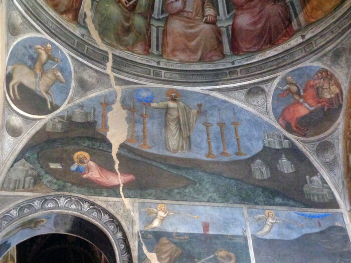 Невероятным было также сравнение «точки зрения», использованной Микеланджело, который воспроизвел башню точно под тем углом, как она появлялась, если к ней подплывали на лодке в 1500 году, от замка Искья в сторону башни Гевара, которая находится прямо напротив залива Картаромана. Древние карты - такие как упомянутая выше карта и фреска действительно описывают точное расположение места, где причаливали лодки у подножия башни, и скалы. Еще одна важная деталь, подтверждающая точное знание этих мест художником, в отсутствие доступных карт (первая карта Искьи датируется 1586 годом, как и фрески, изображающие залив, созданные после 1570 года, через многие годы после смерти Буонарроти).