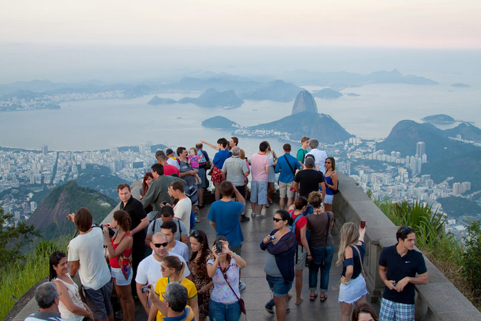 Внизу как на ладони расстилается Рио-де-Жанейро с его знаменитыми пляжами Копакабана и Ипанема, горой Сахарная Голова.