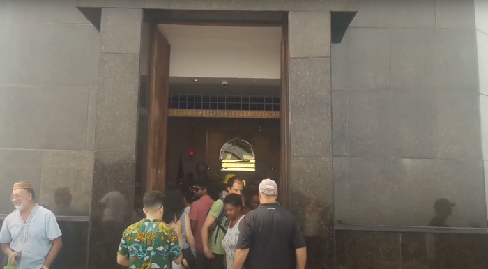 Обходим пьедестал (2), и со стороны спины статуи видим большой вход (3).