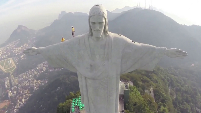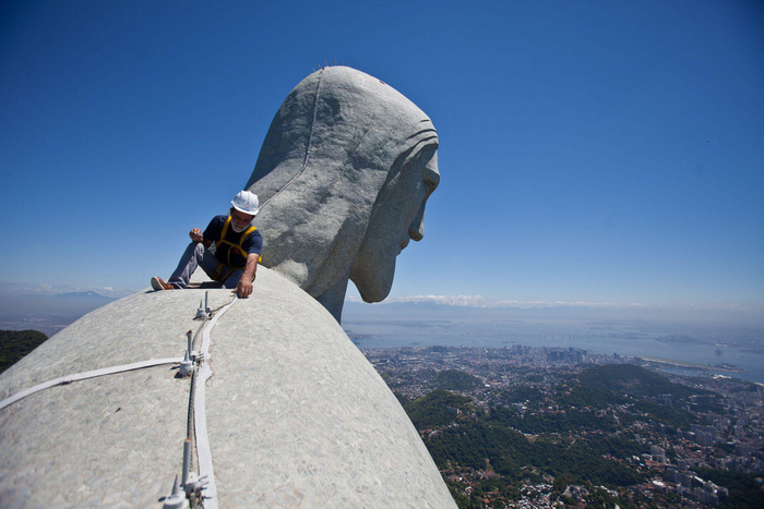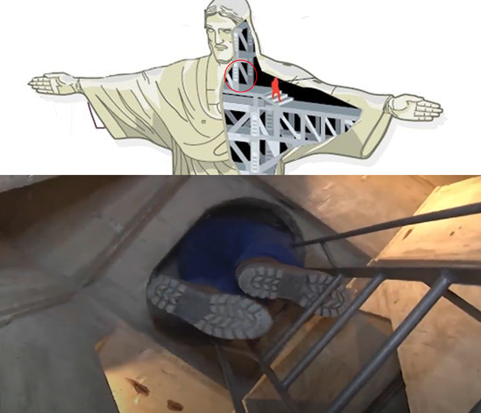 Если вы не страшитесь высоты и не боитесь получить премию Дарвина, можете походить по внешней стороне рук. По телу статуи проходит молниеотвод, на фото это металлические штыри с толстой проволокой. Он может использоваться для зацепа тросов и прочих альпинистских приспособлений.