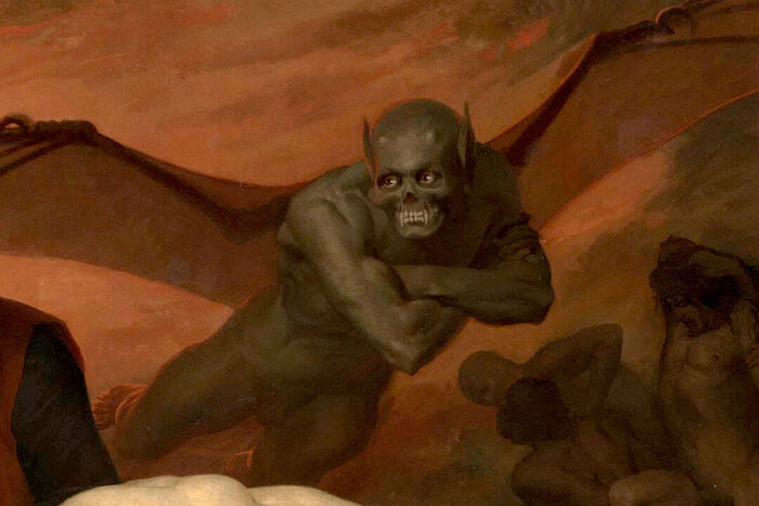 Кроме того, на картине появляются сверхъестетвенные существа, чтобы подчеркнуть ужасающую атмосферу, царящую в аду. О ней так же говорят и лица главных героев – Вергилия и Данте. За основу сюжета взят вот этот отрывок из поэмы: