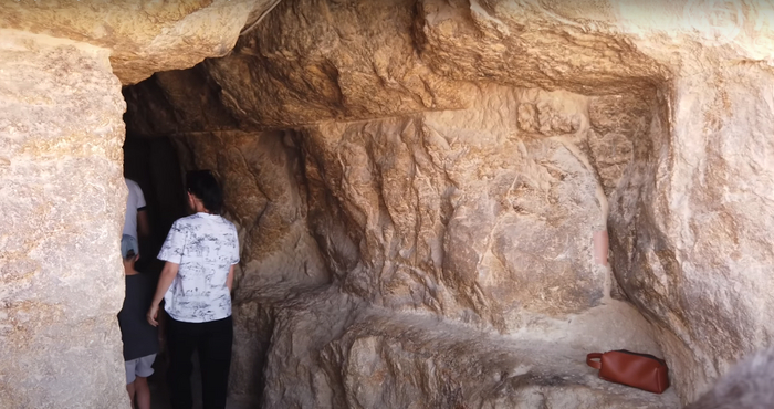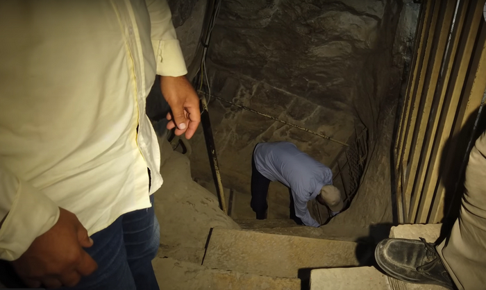 Один аутентичный, его проделали древние египтяне. Он намертво запечатан каменной пробкой. Поэтому дорога туда нам закрыта. Второй вход создал в IX веке местный султан, позарившийся на древние сокровища. Султан-вандал остался ни с чем, не обнаружив ничего кроме древней пыли и паутины. Зато неудавшийся расхититель сокровищ оставил не совсем благодарным потомкам удобный горизонтальный проход.