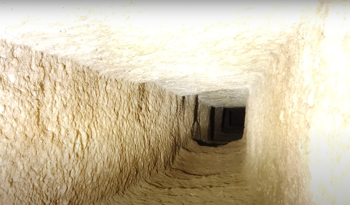 От камеры фараона (10) и Большой галереи (9) отходят многометровые вентиляционные шахты. Влезть в них не получится, потому что они слишком узкие. Но мы же необычные путешественники, правда? Вот как изнутри примерно выглядят шахты.