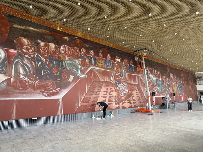 Летом 23 года нами была произведена реставрация монументального произведения в холле известнейшего медицинского института им. Н. И. Пирогова. Подробнее об этих работах можно прочитать в предыдущей статье: здесь