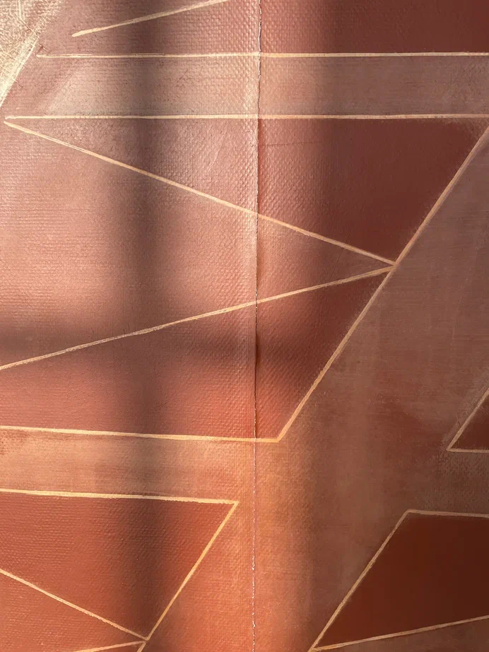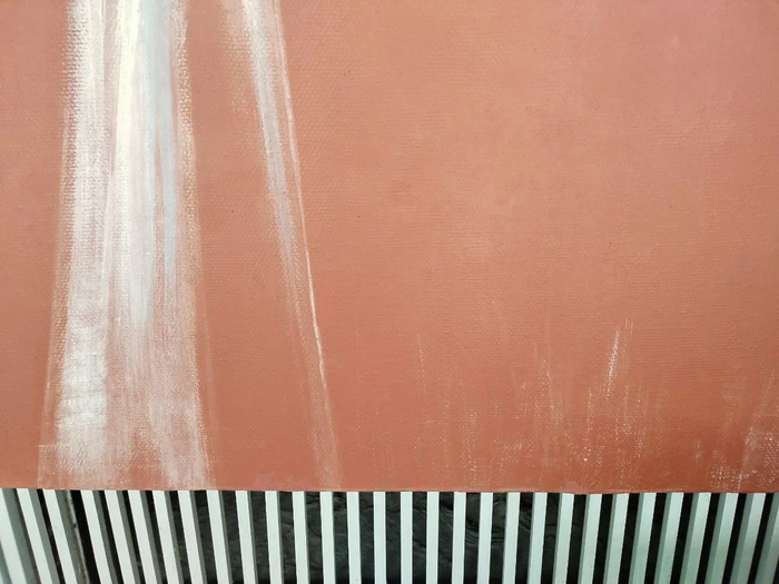 Так же так как в основе находятся деревянные рамы, конструкция «дышит» от перепадов температурно-влажностного режима. То есть дает расширение и усадку, поэтому несколько стыков холста деформировались и немного разошлись.