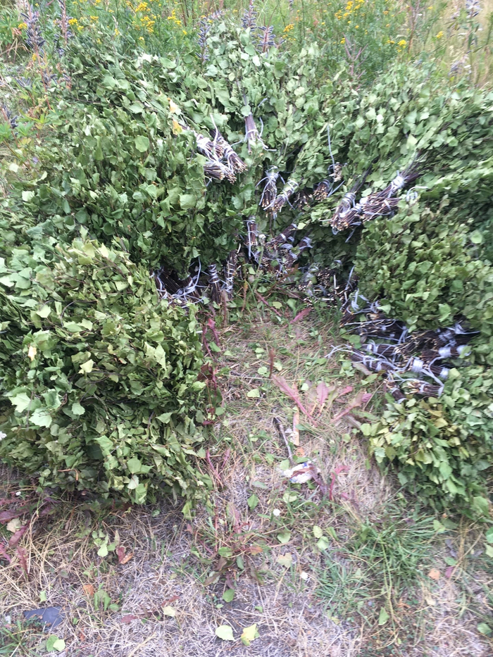 Участки с березами казались большими, но за 2 дня мы исчерпали все ресурсы. Получилось связать в районе 120 штук.Работа приостановилась на неделю, пока мы подбирали новое место.