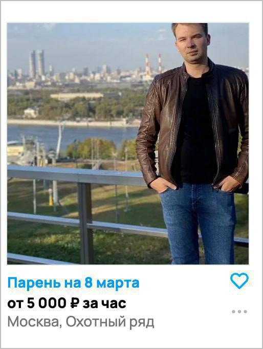 Тариф 5000₽/ч. За отдельную плату «Парень на час» подарит заранее купленный заказчицей подарок, сходит в ресторан, помолчит или наговорит комплементов.