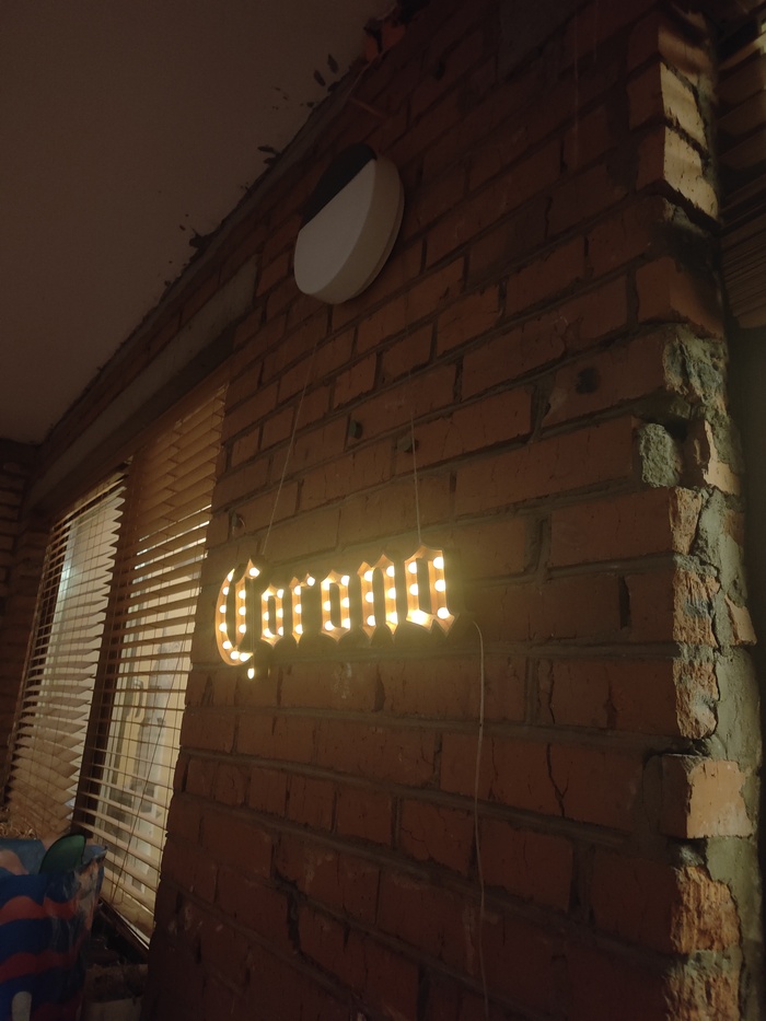 Так же, для большего антуража, прикупил на Авито вывеску из закрывшегося бара, на балкон вписалась как родная