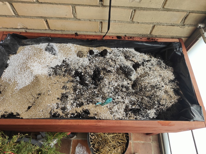 В нее спокойно поместилось 50л земли, 8л перлита и вермикулита.