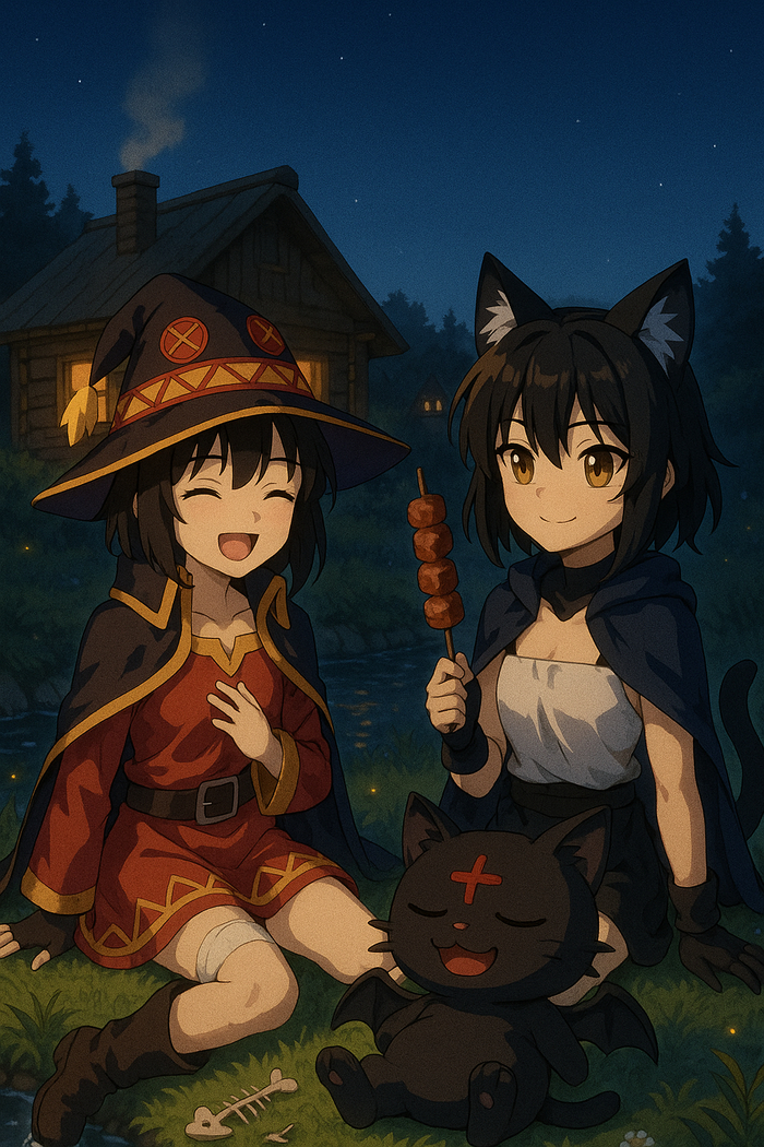 18 Vadmax 4 месяца назад НР || Нейро-Рендеры А на нашей с тобой даче,возле бани, у реки.Мегумин — взрывная няшка.Уже жарит шашлыки Показать полностью 2 [моё] Арты нейросетей Konosuba Megumin Anime Art Неко Animal Ears Кроссовер Chomusuke Длиннопост Ещё 0