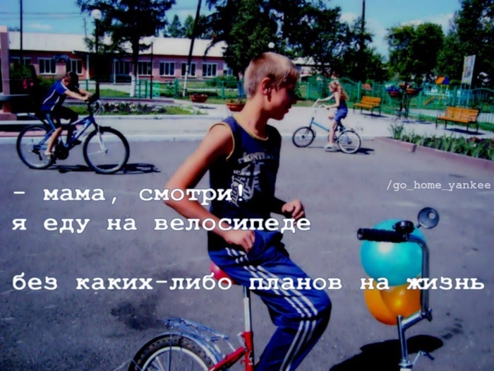 Это и буквально (велосипед), и метафора про жизнь: герой несётся без руля и без плана.
