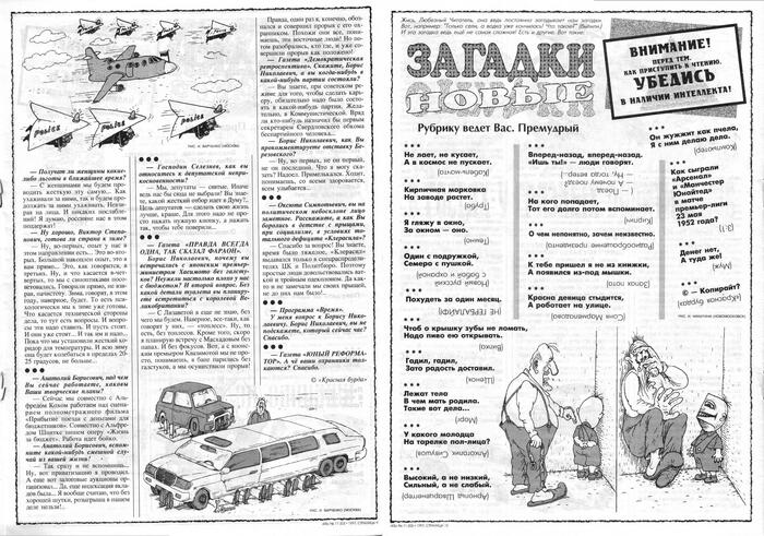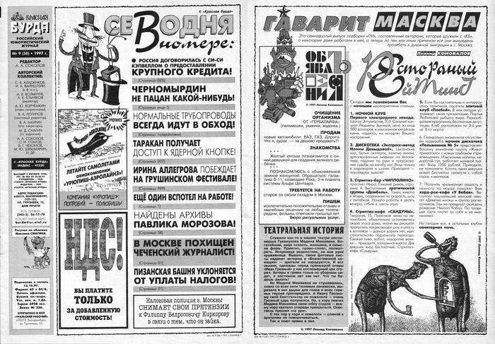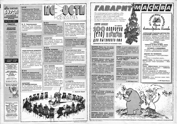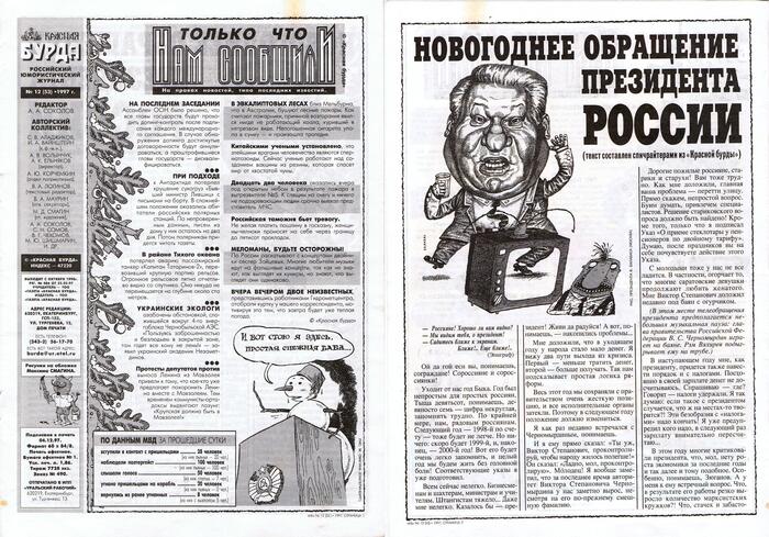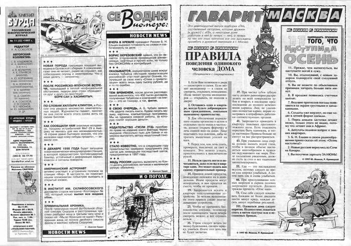 6 CEKCTAHT 2 года назад Газеты и журналы Серия Красная Бурда Красная Бурда - 1997 - 12 (53) Показать полностью 11 Журнал Красная бурда Юмор Ирония Длиннопост Скан 1997 Грустный юмор Ещё 0