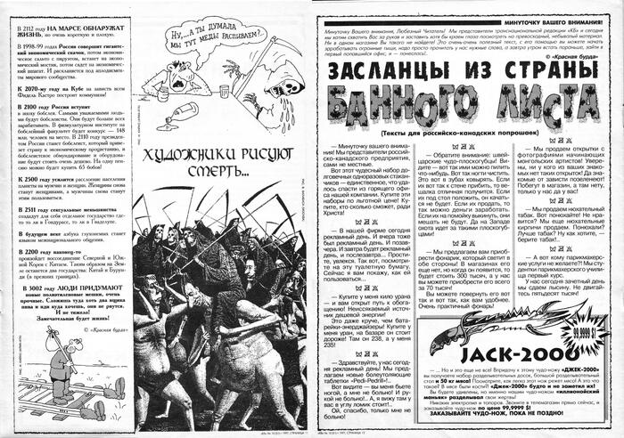 7 CEKCTAHT 2 года назад Газеты и журналы Серия Красная Бурда Красная Бурда - 1997 - 10 (51) Показать полностью 11 Журнал Красная бурда Юмор Ирония Длиннопост Скан 1997 Грустный юмор 1 Ещё 0