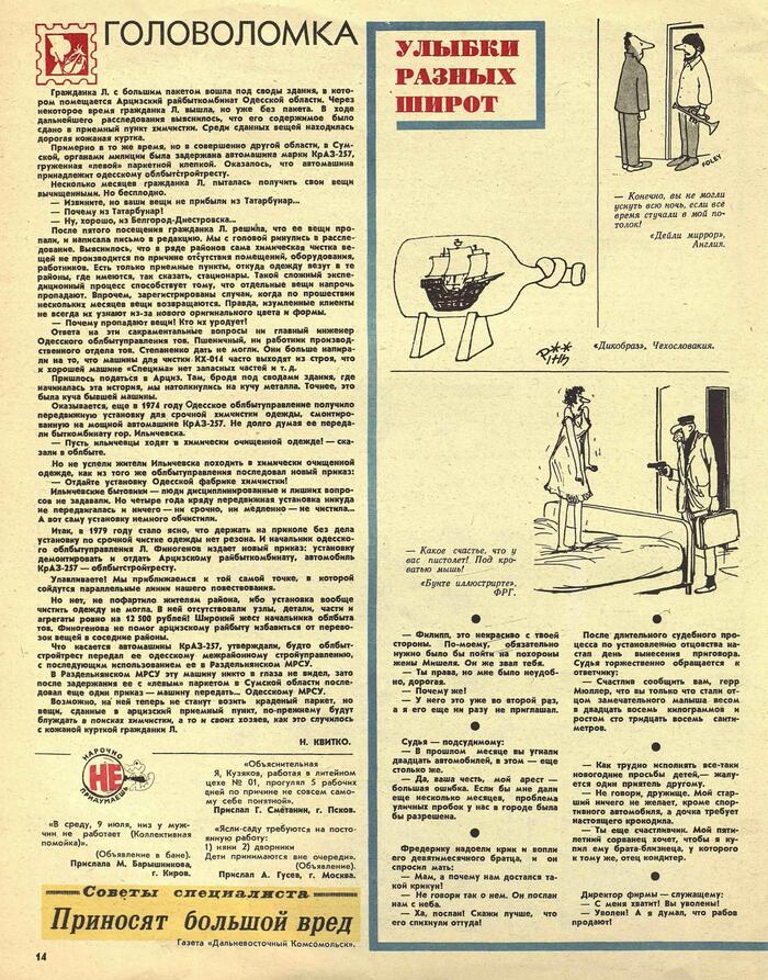 17 CEKCTAHT 2 года назад Газеты и журналы Серия Журнал Крокодил Крокодил 1981 - 17 Показать полностью 15 Журнал Крокодил Юмор Сатира Длиннопост Карикатура 1981 Ещё 0