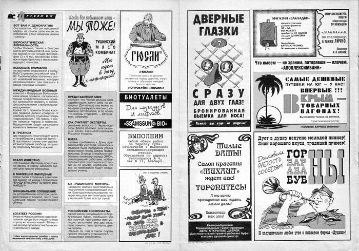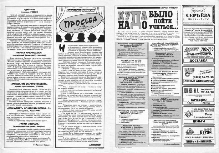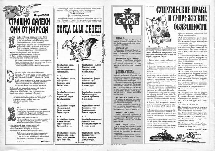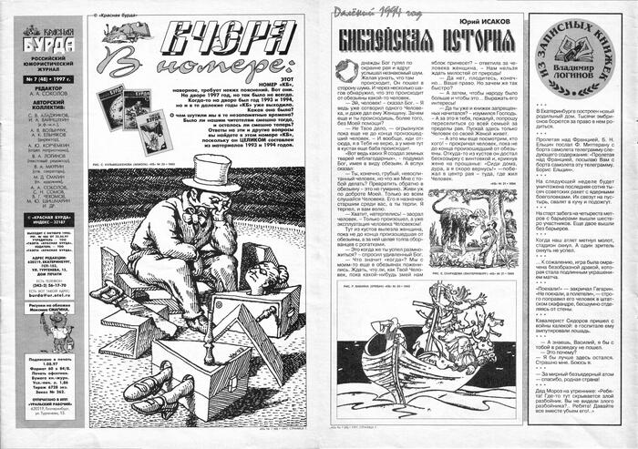6 CEKCTAHT 2 года назад Газеты и журналы Серия Красная Бурда Красная Бурда - 1997 - 07 (48) Показать полностью 11 Журнал Красная бурда Юмор Ирония Длиннопост Скан 1997 Грустный юмор Ещё 0