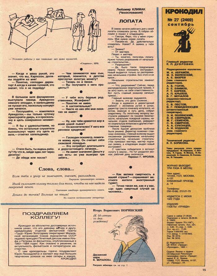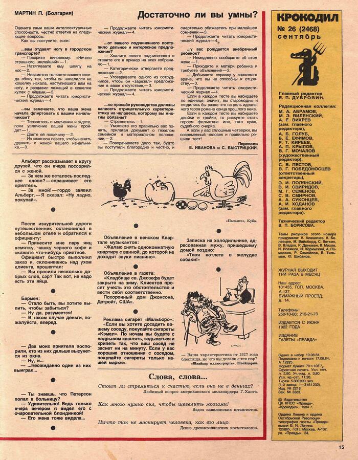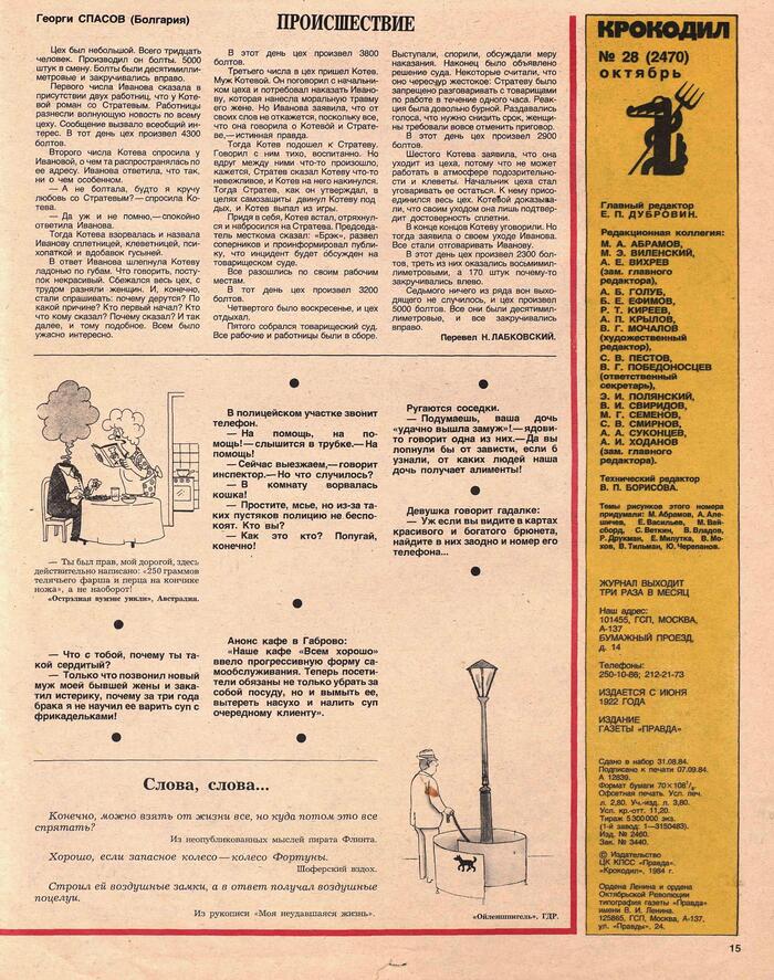 28 CEKCTAHT 2 года назад Газеты и журналы Серия Журнал Крокодил Крокодил 1984 - 26 Показать полностью 15 Журнал Крокодил Юмор Сатира Длиннопост Карикатура 1984 Ещё 0