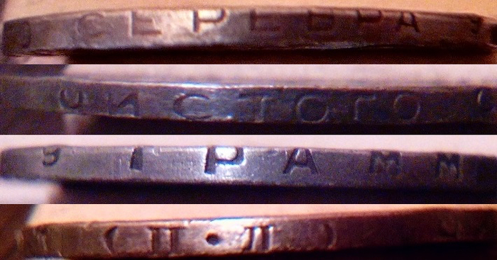 Третье — гурт. На подлинных монетах надпись на гурте чёткая, уверенная, как автограф императора. А у подделок — слабая, еле заметная. Как будто человек, который ее делал сомневался: «а может, не стоит?» — и бросил на полпути.