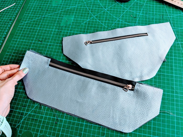 А ведь это самый неприятный шов во всей сумке: он выгибает детали, даёт сумке объем. Там подклад тянет в одну сторону, кожа в другую. Но Юля его побарывает!