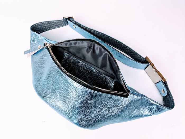А вот и юлина сумочка со всех сторон. Нереальная красотка из серо-голубого металлик флотера. Я сама не люблю флотер и не ношу металлик, но мамадорогая, до чего же она хороша. Хочу сшить такую же :)