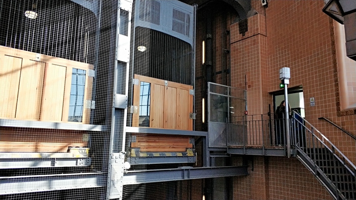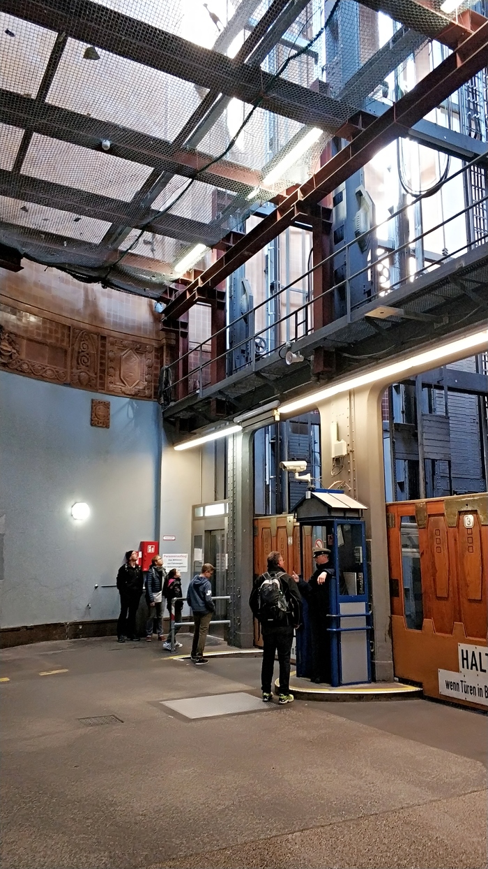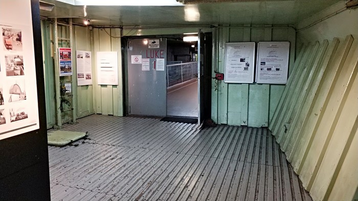 А это уже вход. Точнее, его автомобильная часть. В одном из четырех лифтов машина(ширина которой не должна превышать 1.9 метров) может заехать и спуститься вниз, но только по будням и в дневное время. Я же ныряю в другую дверь, для пешеходов, в этом случае пользование тоннелем круглосуточно и бесплатно
