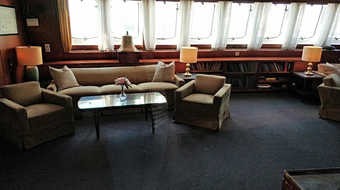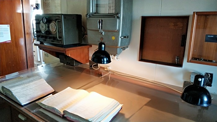 Из машинного отделения можно выйти обратно в коридорчик, где уже экспозиция обстановки для экипажа. Кажется, кают-компания