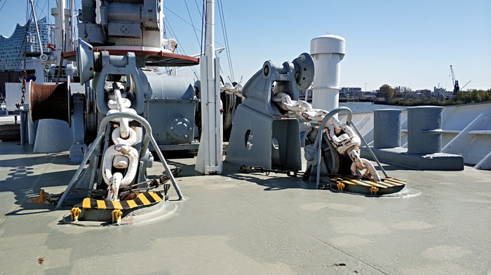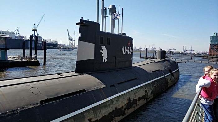 Недалеко от порта припаркована настоящая подводная лодка, оборудованная для туристических посещений. Несмотря на то, что мы в Германии, лодка вполне советская и была построена в 1972 на заводе в Нижнем Новгороде, а с 2002 года выставляется в Гамбурге. Считается одним из символов немецкого портового города.