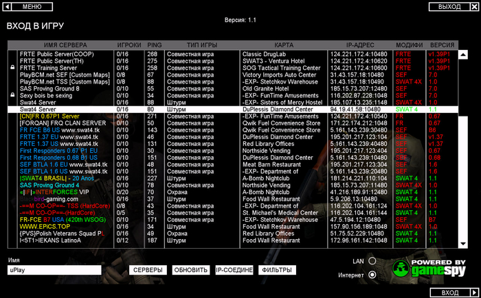 🟢Заходим на сервер (в меню): ВХОД В ИГРУ 👉 Обновить список серверов👉 Ищем PikORI swat4❗️ВАЖНО, сервер в списке, IP адрес должен быть 94.19.41.58