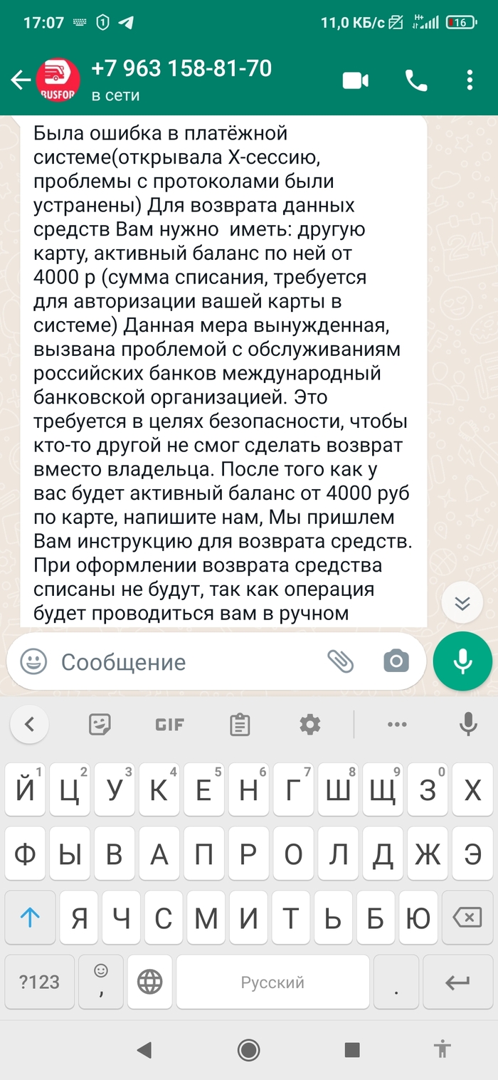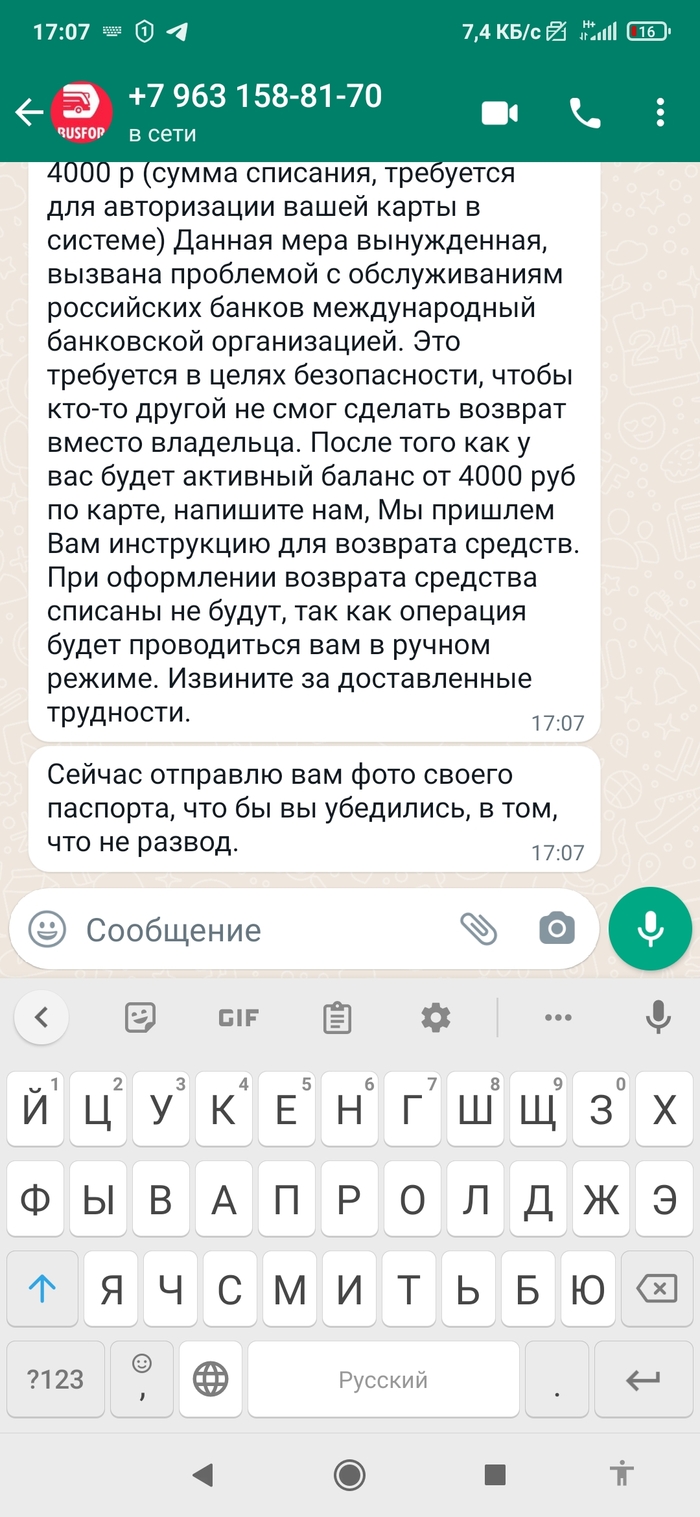 Таким нехитрым образом, я заплатил хуй пойми за что 4000 рублей. О чем незамедлительно сообщил "водителю". Тут уже подключилась, якобы, служба поддержки Busfor