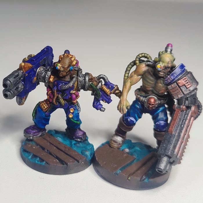 Очень мне нравится оформлять внучков Дедушки под фракцию жизни, с цветочками, кустиками, травкой и червячками. Так сказать, показать двойственную природу Хаоса - с одной стороны Нургл - бог смерти, болезней и отчаяния; а с другой - жизни, стабильности и упорства.