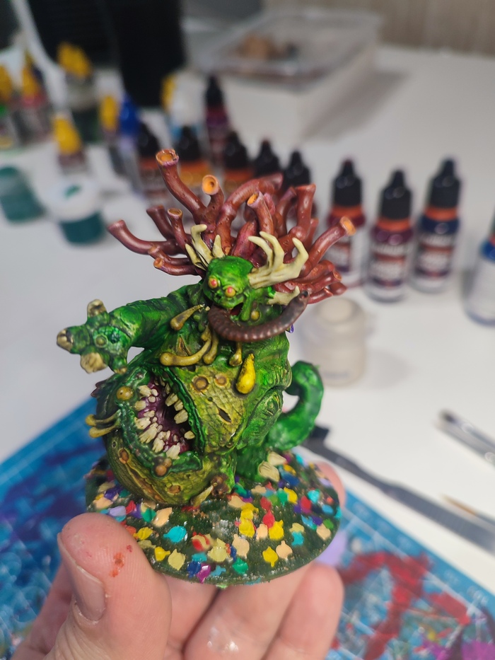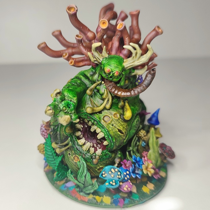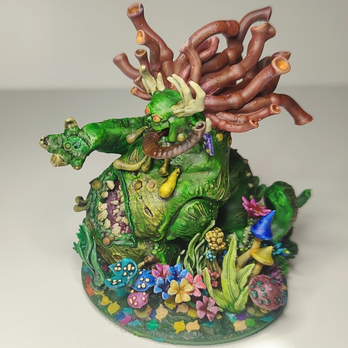 Зверь Нургла, литьё литейки Red Rooster, цветочки напечатаны в печатне Логово Каракатицы.
