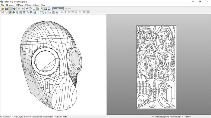 -Далее вырезаем все "лишние" элементы (позже к ним вернемся) и на основе лоуполи модельки делаем развертку