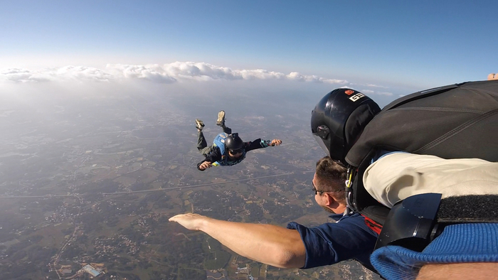 Я сидел возле самой двери, и, когда на высоте 4км ее открыли - было волнительно 😅. Инструктор за время взлета несколько раз повторил все, что говорил ранее, проверил все снаряжение и мы прыгнули первые.