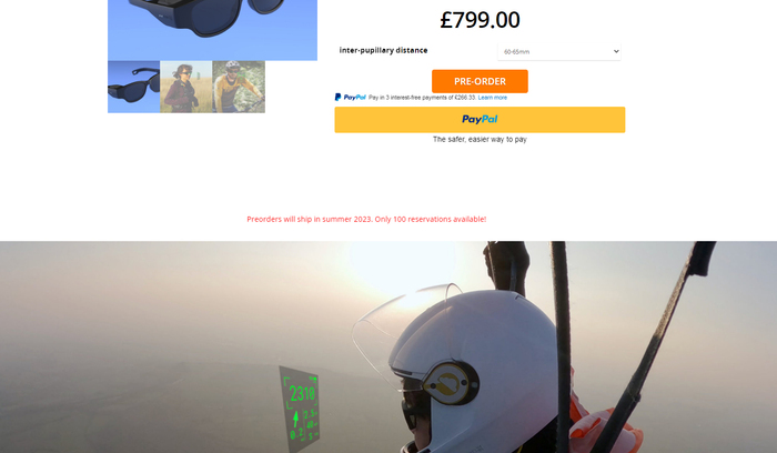 Мол, предзаказ но новый чудодевайс - солнечные очки, которые показывают высоту, и направление/расстояние до ерадрома.Большинство парашютистов мечтали об этом - предупреждающем дисплее для определения высоты.