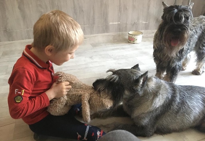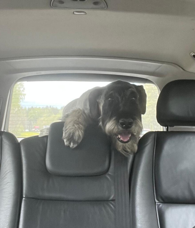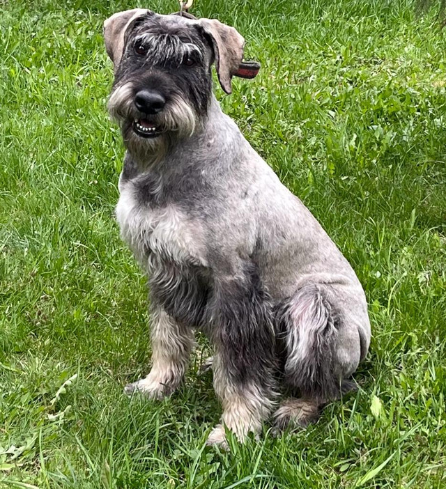 Сука ризеншнауцера Рейчел (для сомневающихся - да, это точно ризен, не миттель, есть документы) с удовольствием рассмотрит предложения нового дома. Рейчел сейчас 5 лет (Рейчел от Регины, д.р. 28.05.2018), она очень красивая, доброжелательная, подвижная, хвост купирован, уши нет.