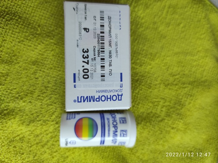 С давних пор проблемы со сном решаю при помощи снотворного,, Донормил,, На днях решила пополнить запас. Маленькая аптечка по адресу СПб Ленинский проспект. 118. Цена оказалась чуть пониже, что приятно удивило и насторожило. Прям в аптеке, по коробочке пробиваю штрих-код, всё в порядке,, Донормил,,. А вот сама баночка вызвала смутные сомнения, кои я и предъявила заведующей. Она меня пламенно уверила, что повода для опасений нет. ,,Свят, свят, уголовная статья, да мы никогда..ну коробочка же настоящая!!,, Вот только мне не коробочку жевать, А таблеточки внутри. Придя домой, сравнила с предыдущим пузырьком. Игра,, найди 10 отличий,,