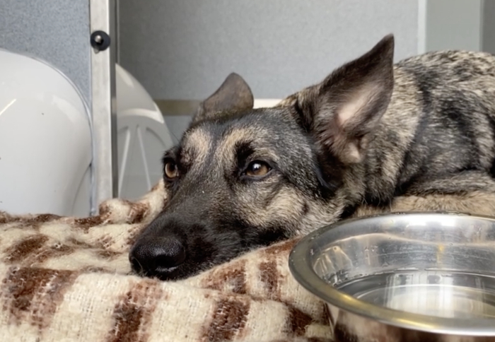 Сразу после отлова задержанную овчарку угостили сарделькой, после чего доставили в приют для бездомных животных в районе Троя.