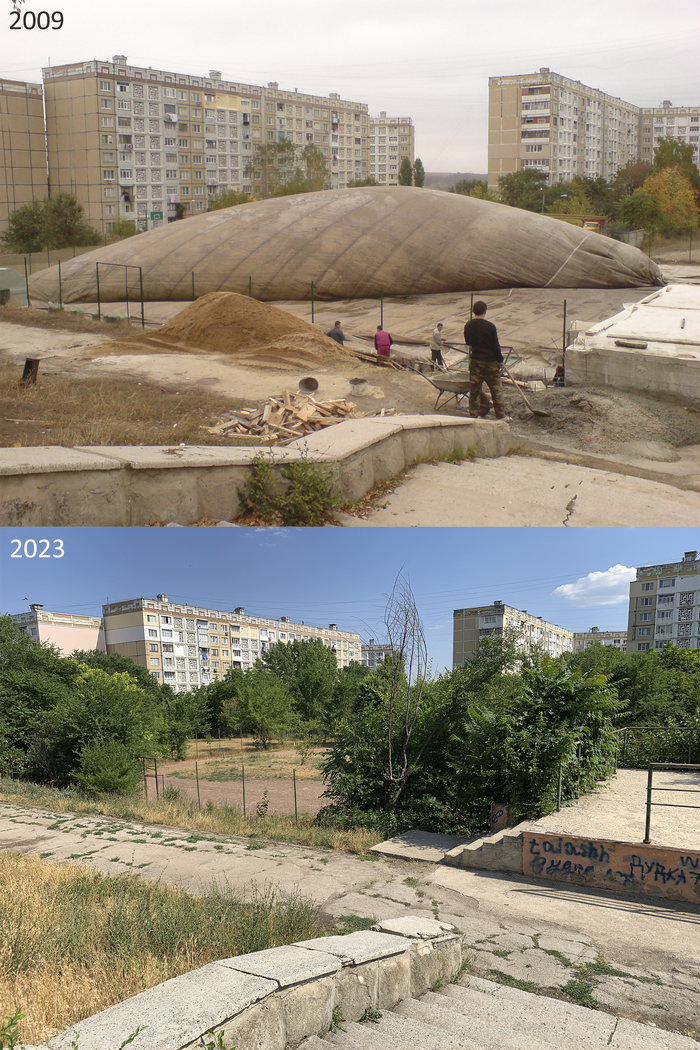 8. Ну здесь ничего необычного, просто какая-то херобора надутая, увидел и решил снять. Вроде бы использовали как тенисный корт. А так вообще там спортивная площадка и лицей напротив.