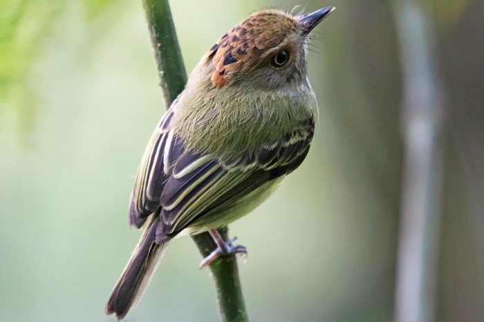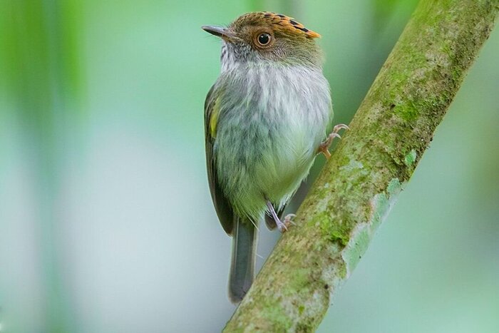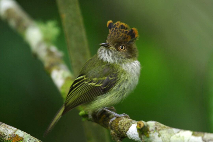 Посмотрите на эту красотку? Не правда ли, эта птичка похожа на аристократку, накрасившую губы и глаза, со стильной короткой стрижной и зелёным палантином поверх вечернего платья?