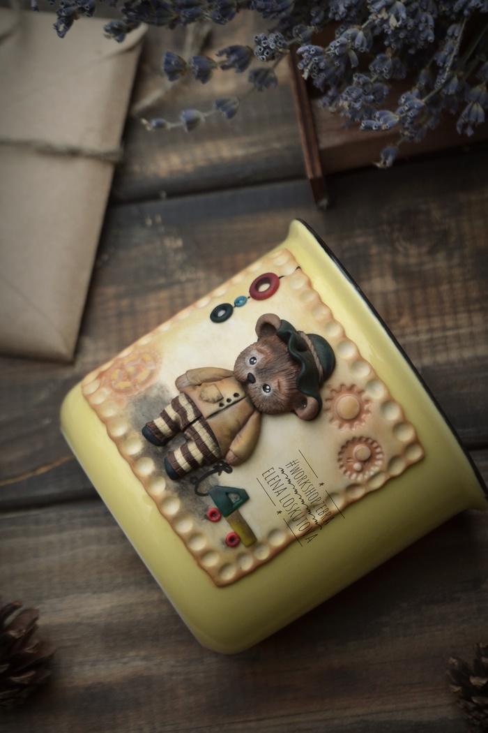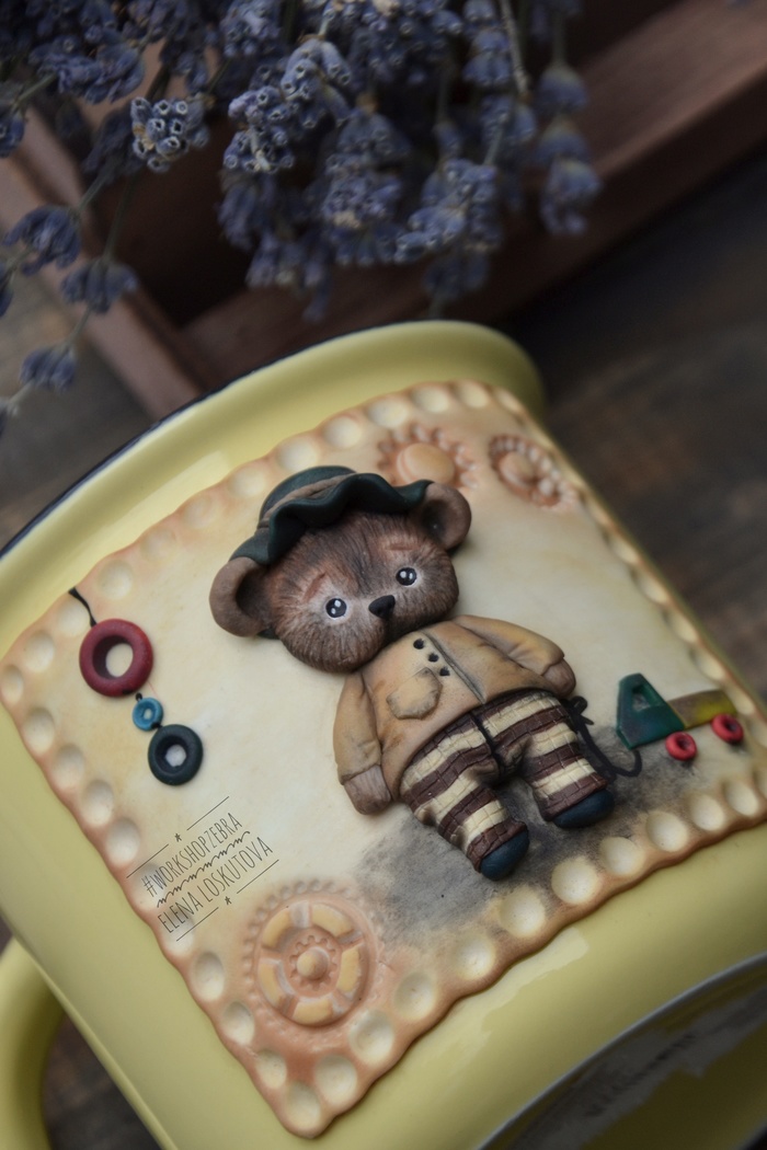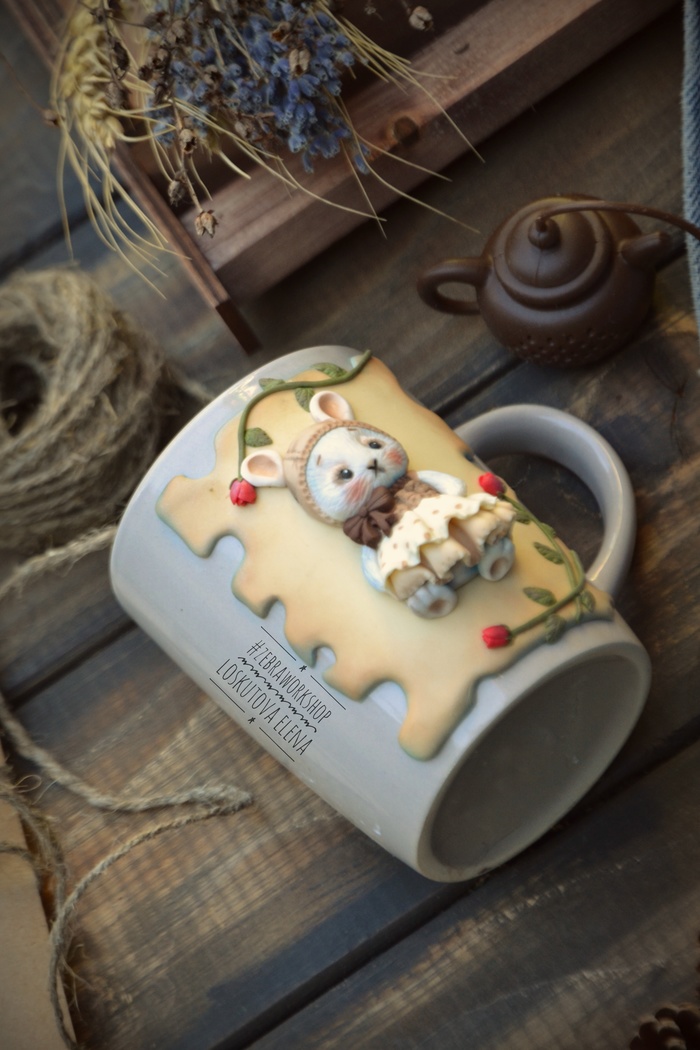 Идея создать серию кружек под названием "Мои игрушки" возникла во время просмотра работ одного потрясающего иллюстратора Инги Измайловой. Так появилась первая кружка с зайкой. Дальше меня захлестнула фантазия и появились следующие работы, в которых я старалась сохранить свой новый стиль.