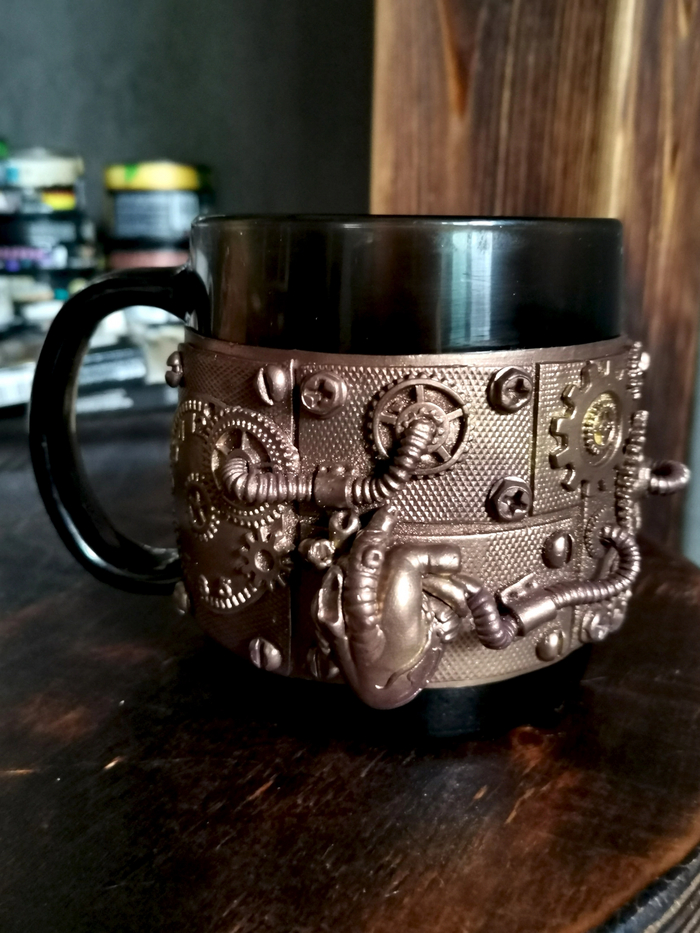 Одна из совсем недавних работ - кружка в стиле стимпанк