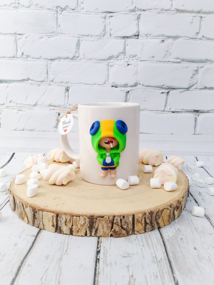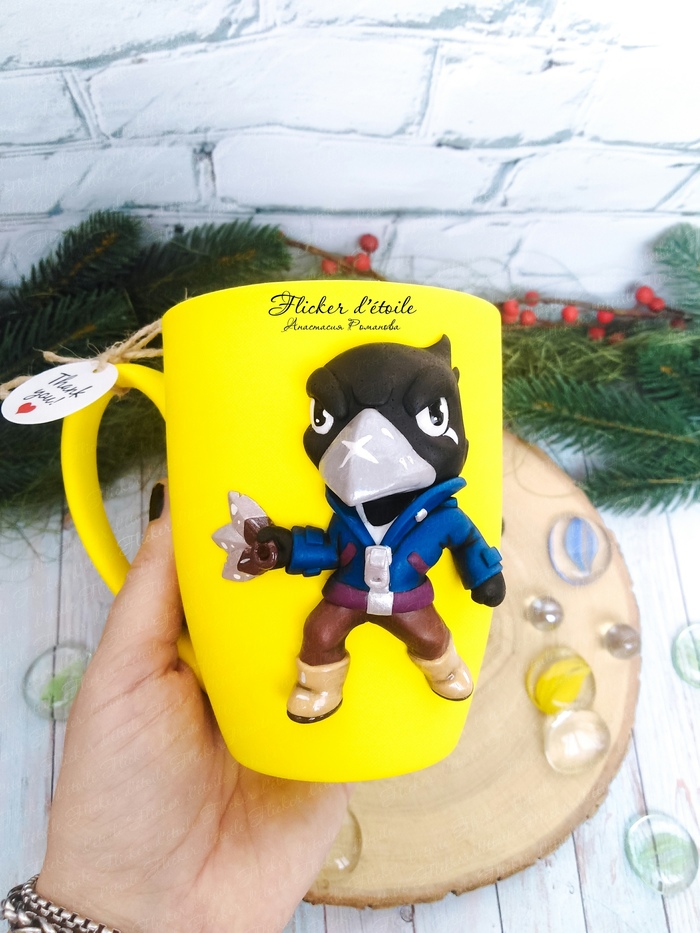Brawl Stars — игра для мобильных устройств в жанре MOBA, разработанная и изданная компанией Supercell. Персонаж выполнен из полимерной глины как декор кружки — сувенир. Ручная работа.⚡