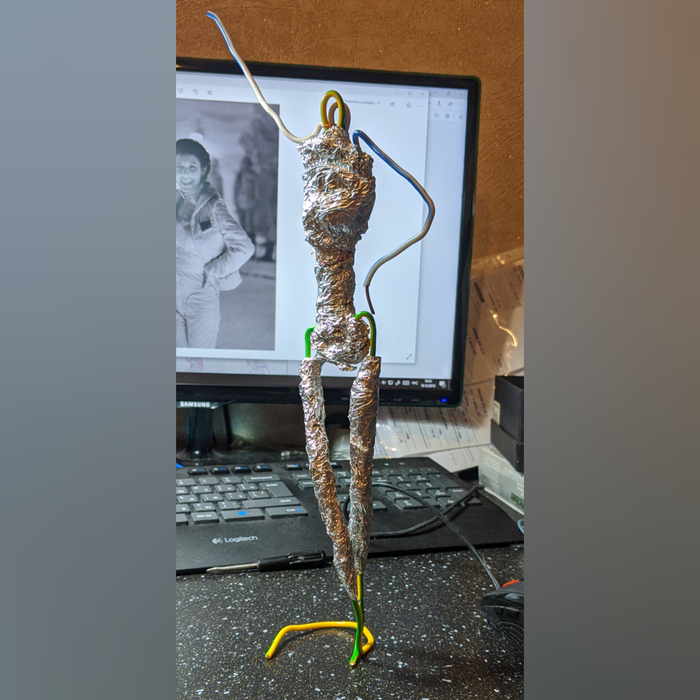 Далее - каркас. Головная боль для лентяев. Тысячу раз пожалел, что не отнёсся серьезнее. Облепил фольгой для экономии материала.